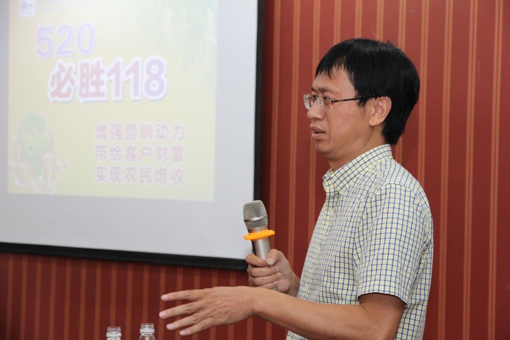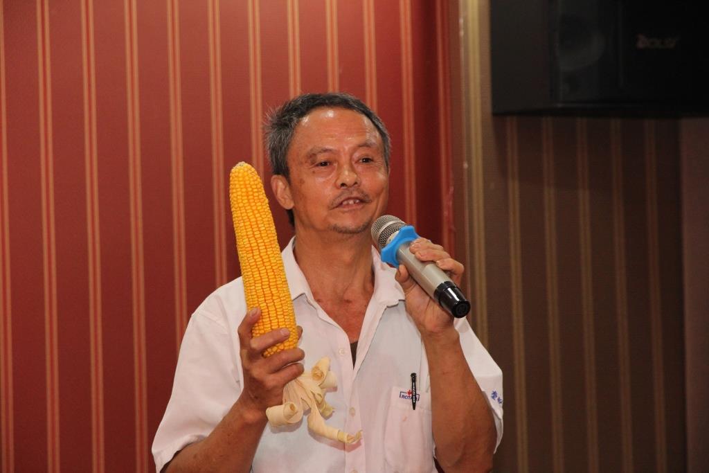 会议当天,与会人员首先前往位于长宁县三元乡的必胜118玉米新品种展示现场进行了参观,实地观看了必胜118的品种表现。通过现场品鉴,参会经销商对必胜118的棒子大、特抗倒、产量高、耐瘠薄等优势赞不绝口。在随后召开的会议上,当地农技站技术员罗老师详细讲述了他种植必胜118的经历。他种植的必胜118在山坡上,土地比较贫瘠,又经历了低温、干旱等极端天气。即使在这样的恶劣条件下,必胜118仍旧表现突出,喜获丰收。随后,公司副总经理、营销中心总经理李天银就必胜118的品种亮点进行了详细的介绍。通过李总生动而激昂地讲解,更加深了经销商们对必胜118的了解和对该品种的信心。