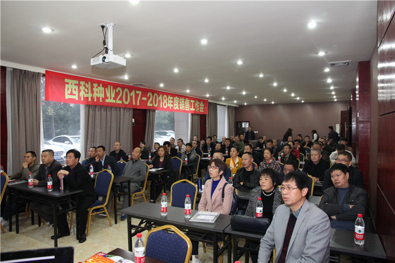 10月28日至29日,西科种业2017-2018年度销售工作会在公司商务中心顺利召开,川、渝、陕、苏四个区域各级经销商近80人参会,公司董事长周小东及公司全体营销人员参加了会议,会议由公司副总经理兼营销总监李天银主持。