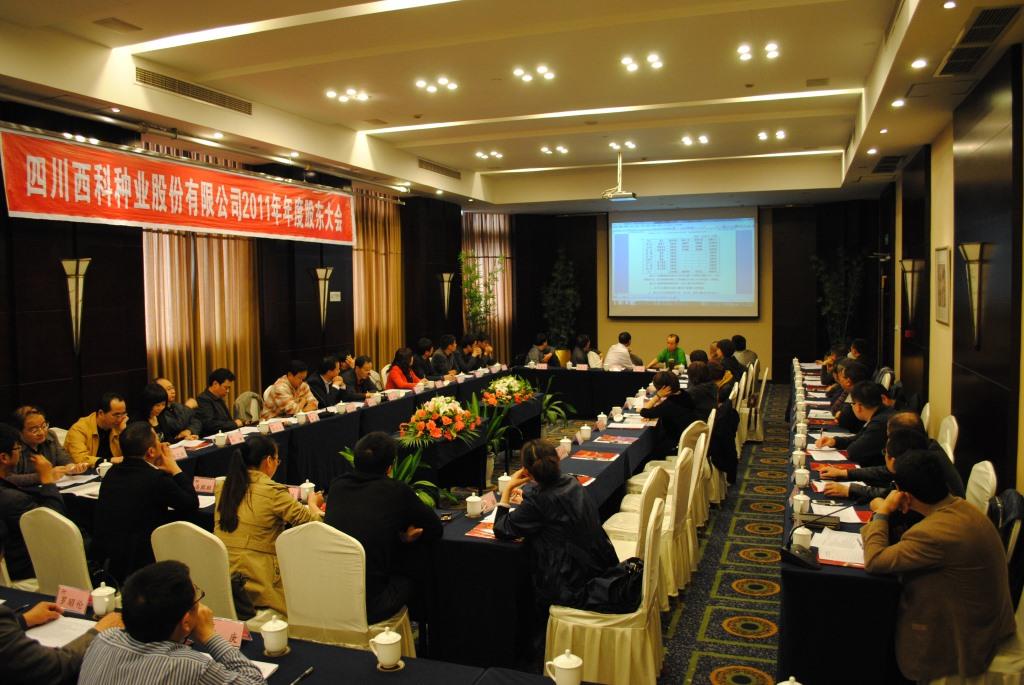 2012年4月13日,公司2011年年度股东大会在四川省绵阳市顺辉世纪巴登酒店成功召开。出席本次会议的股东及股东代表38人,公司董事、部分监事及高级管理人员出席或列席了本次会议,本次会议由公司董事长周小东先生主持,经过与会股东认真审议,会议一致表决通过了《公司2011年度财务决算报告》、《公司2011年度董事会工作报告》、《公司2011年度监事会工作报告》等议案。会议还听取了公司独立董事所作的2011年度工作报告。2012年,公司董事会和管理层将在公司股东的大力支持下,努力提升经营管理水平,确保实现2012年经营计划目标,促进公司持续健康发展。